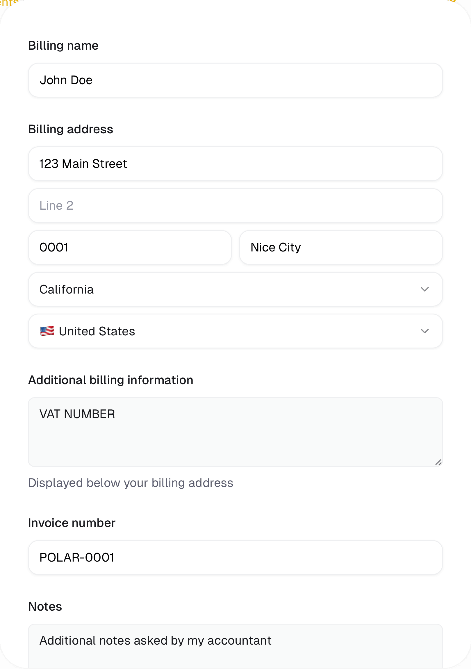 - Add information shown below your billing address.