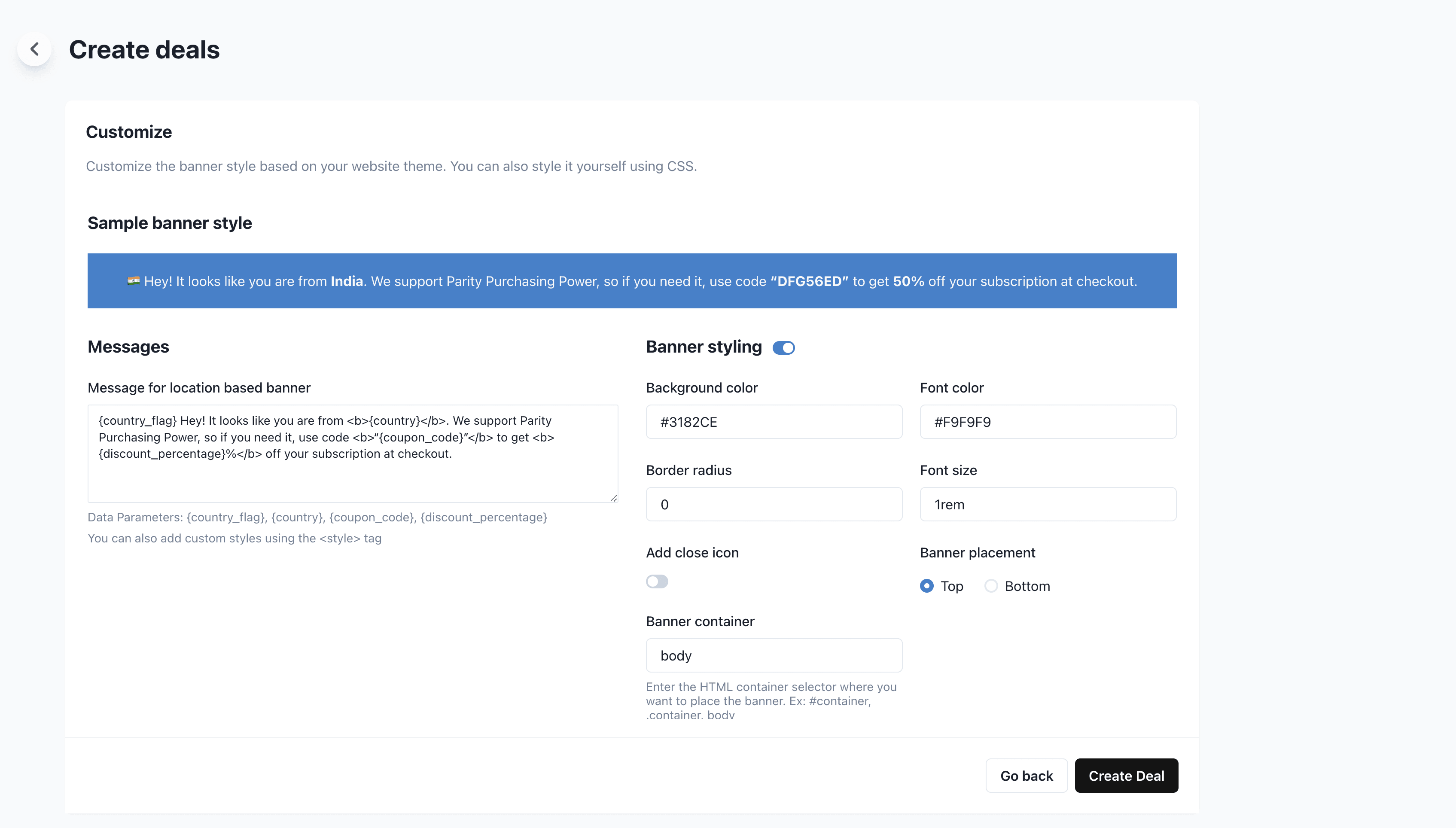 You can then customize the ParityDeals banner to suit your site and design.