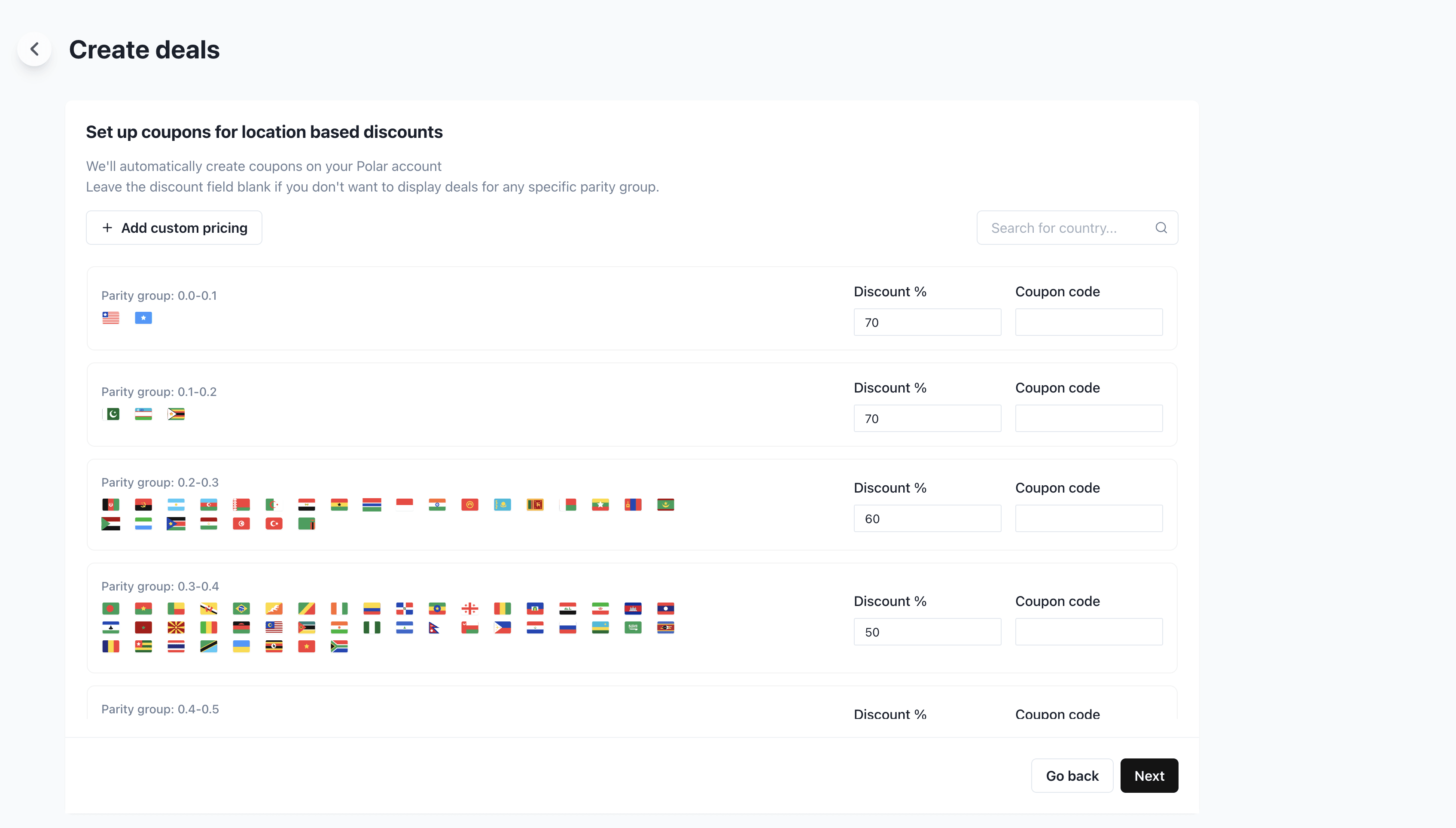 Now we can configure the deals for different countries. ParityDeals offers great defaults, but you can of course change them.