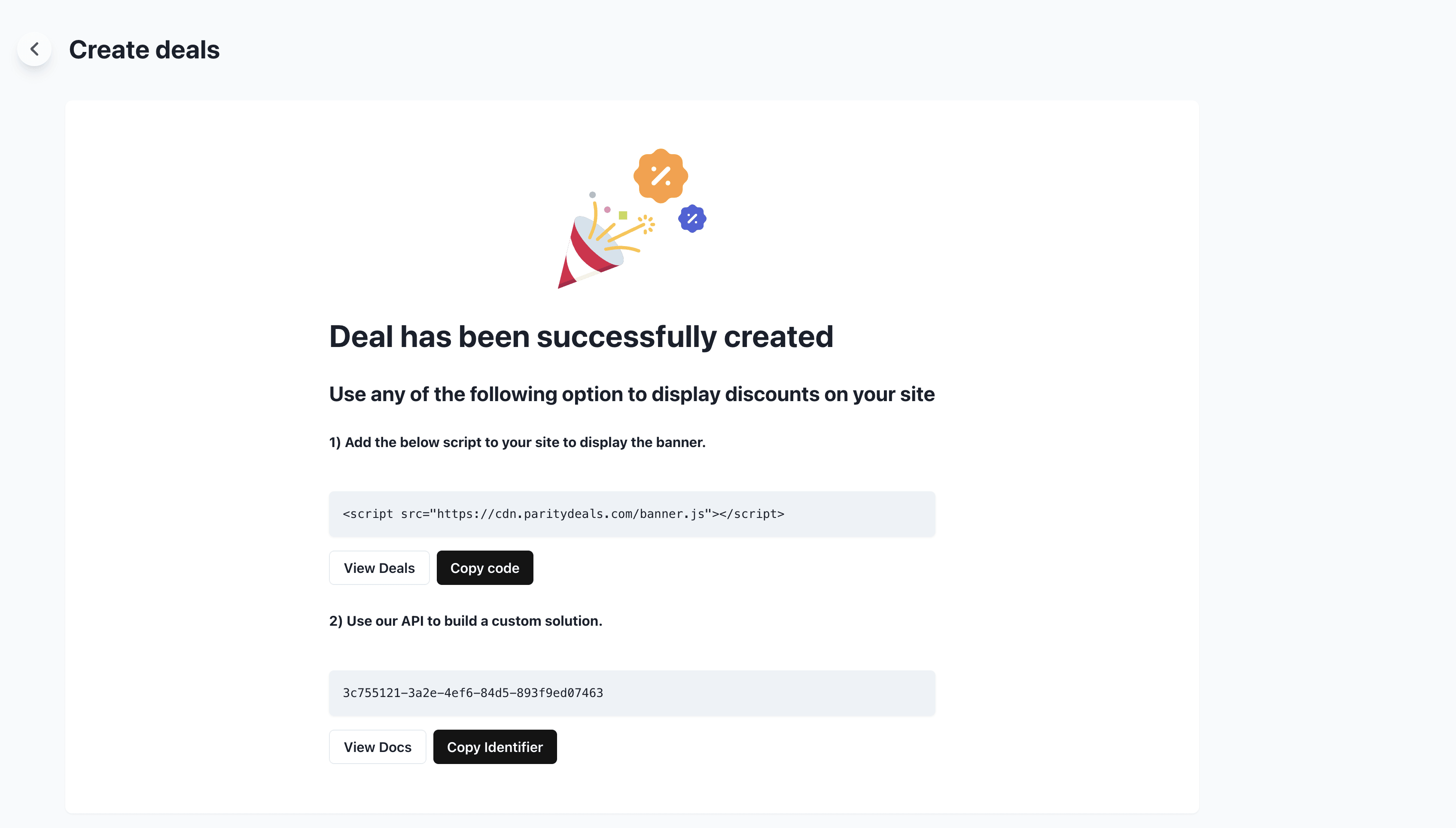 Finally, we’re all setup over at ParityDeals. Just copy the script to their banner and embed it on your site. You’re now done 👏🏼