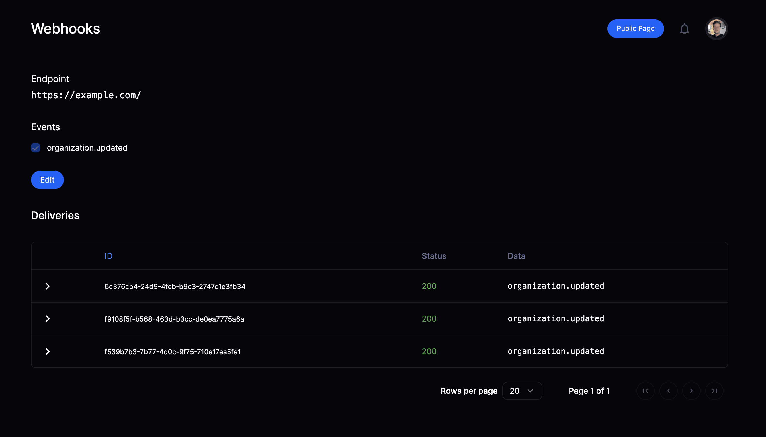 Once a webhook endpoint is setup you will have access to the delivery overview